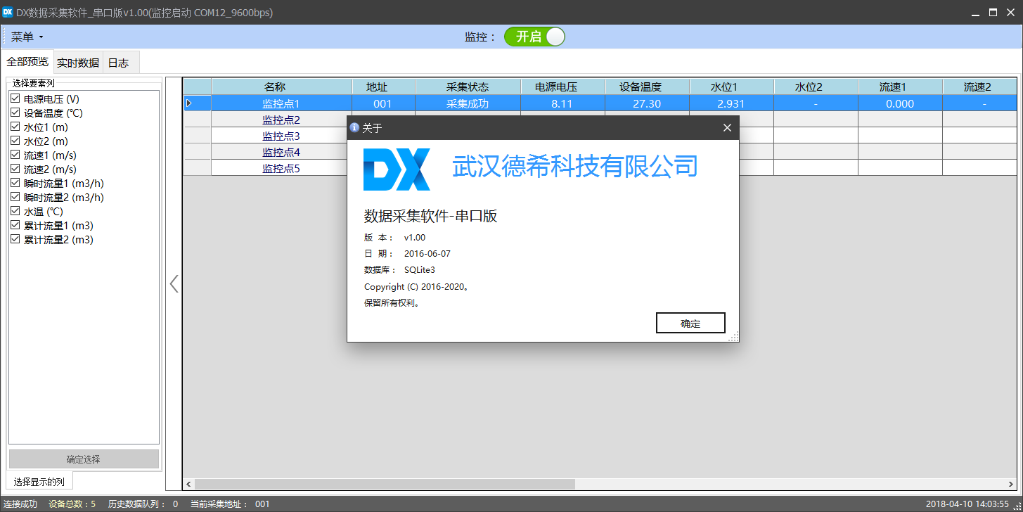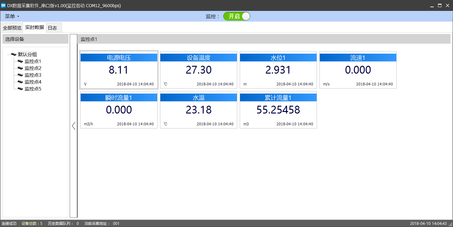 德希科技針對(duì)有人值守的地區(qū)專(zhuān)門(mén)開(kāi)發(fā)區(qū)一套采集軟件,專(zhuān)門(mén)用于水庫(kù)、閘壩、電站的流量數(shù)據(jù)采集、歷史數(shù)據(jù)存儲(chǔ)、報(bào)表導(dǎo)出。該套軟件免費(fèi)提供客戶(hù)使用,將壁掛式的智能化儀表數(shù)據(jù)直接接入電腦,方便值班人員隨時(shí)查看數(shù)據(jù)。